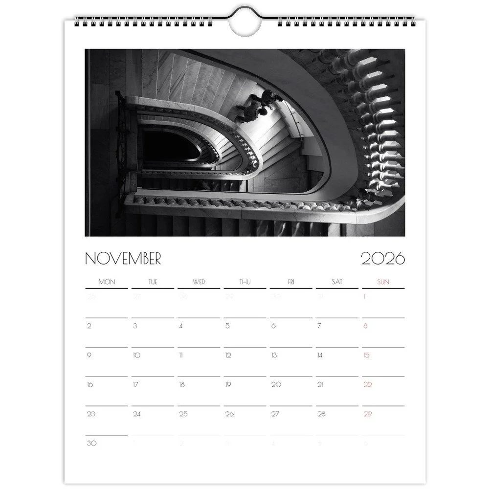 Each calendar is produced on premium coated silk paper, preserving the tonal depth and quiet clarity that define the Echoes series.